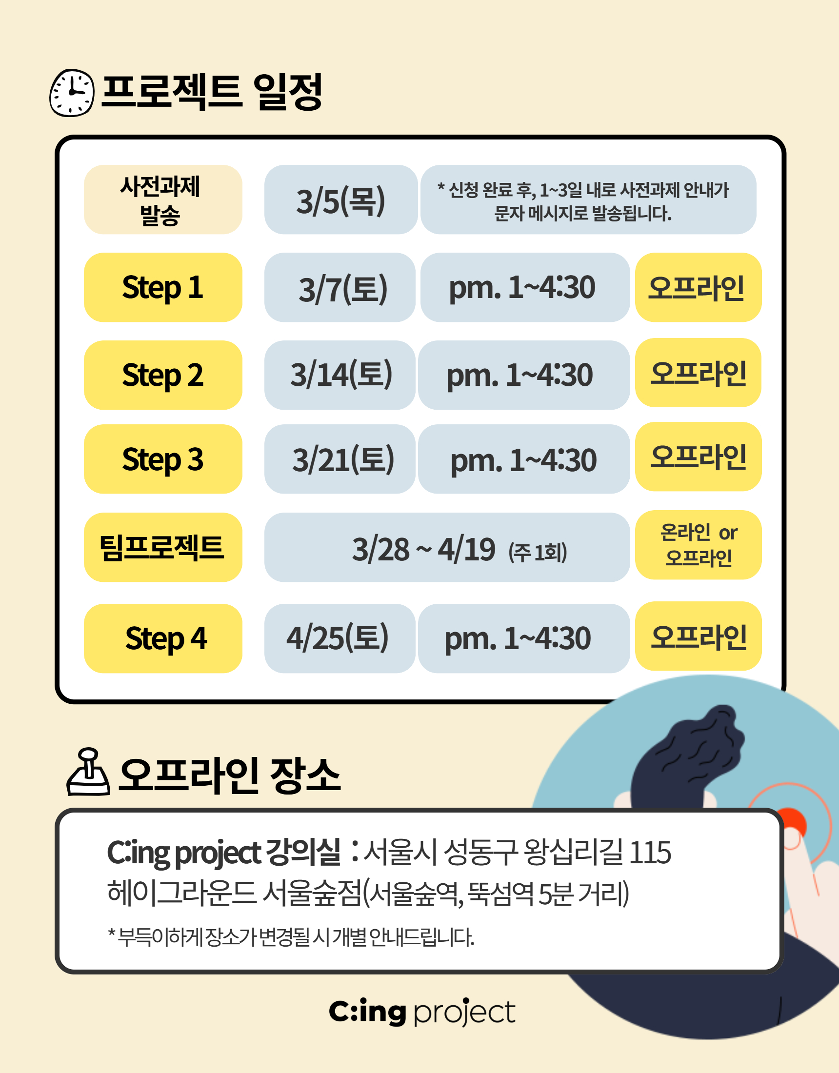 [공지] 아래는 3월 프로젝트 일정 안내입니다. 먼저, 아이덴티티 디자인 프로젝트의 진행방식과 커리큘럼을 아래의 링크를 클릭하여 확인해주세요👇